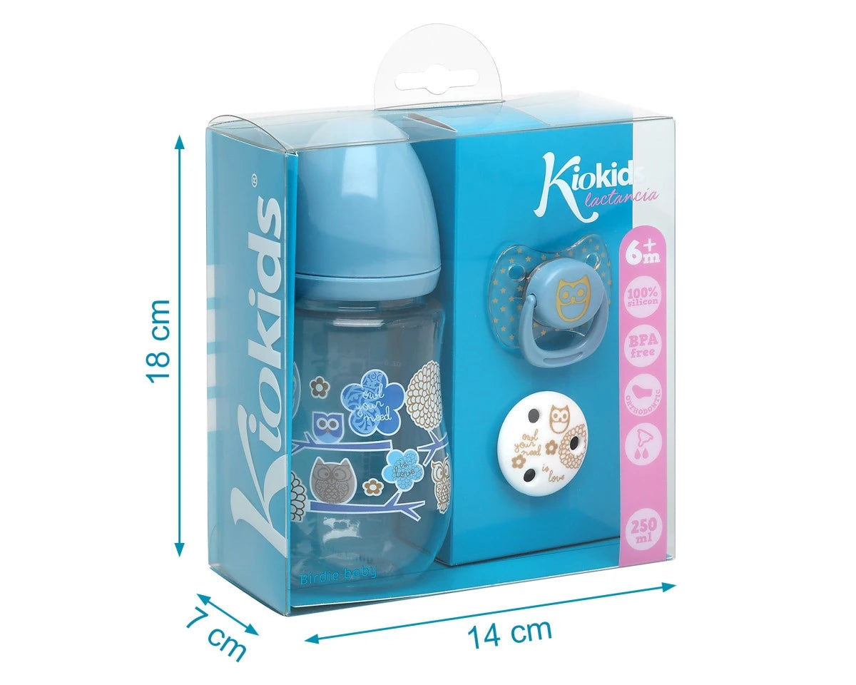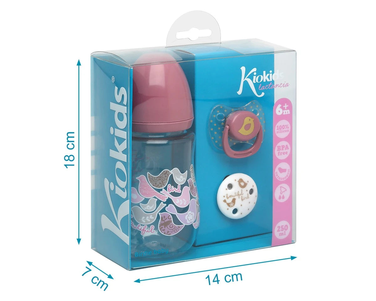 I biberon Kiokids hanno un collo largo per offrire una maggiore superficie per le labbra del bambino, oltre a facilitare il riempimento e la pulizia. Le loro tettarelle sono universali. Sono realizzate in silicone morbido di alta qualità, offrendo i vantaggi di questo materiale: non assorbono odori o sapori e la loro forma e consistenza rimangono invariate con l'uso e il contatto con altre sostanze.