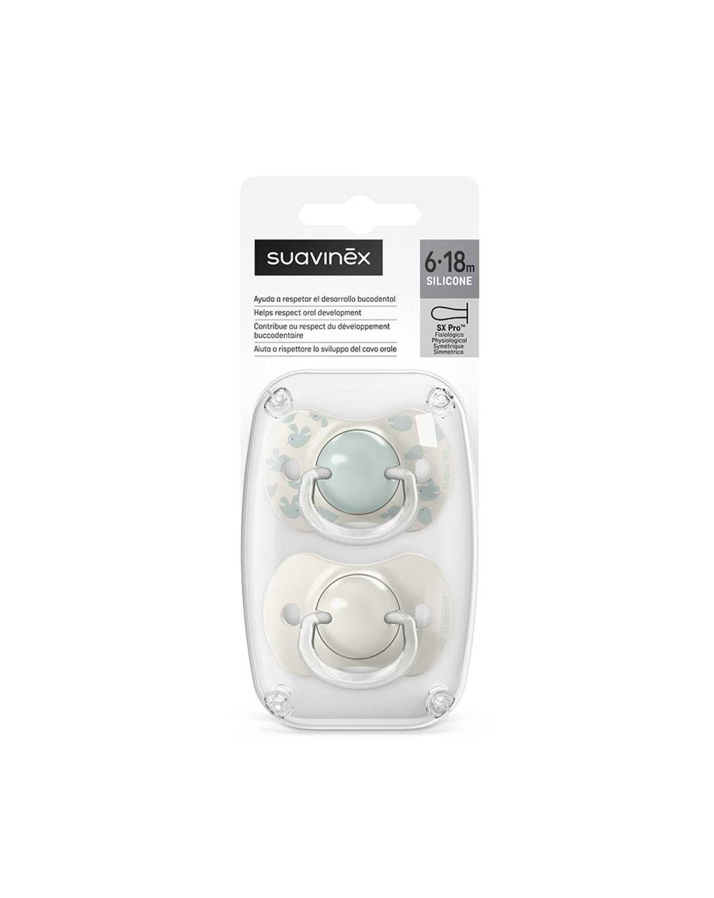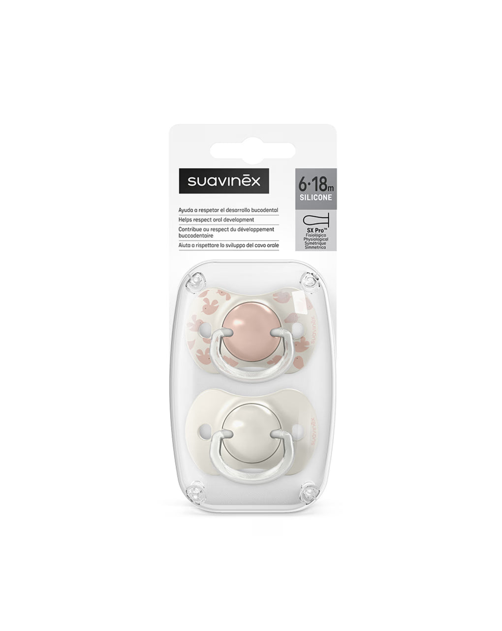 Succhietto Suavinex con nuovo scudo in polipropilene simmetrico.